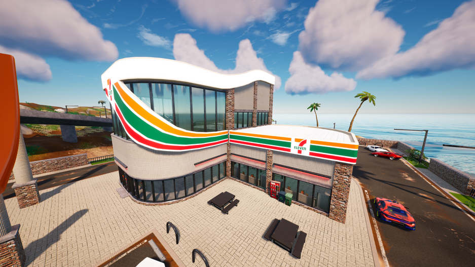 We built a custom Fortnite island featuring a 7-Eleven-branded store, interactive racetrack, and hidden branded cars across three game maps.